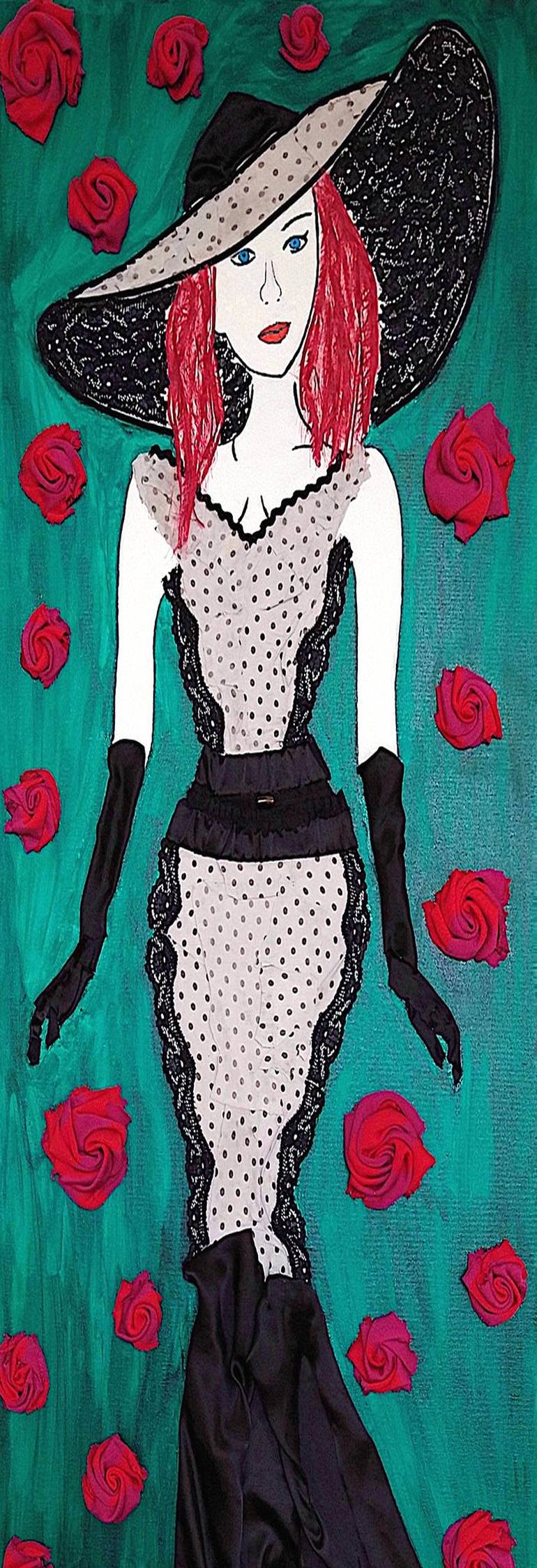 “Pretty Woman” is created with recycled clothes I cut into pieces. Her hair is made of threads of ribbons I had no use for anymore. The ground and the roses are the same fabric, as one can see. I used an old designer vest with really soft and soothe fabric from my mother. I intended to connect this ...