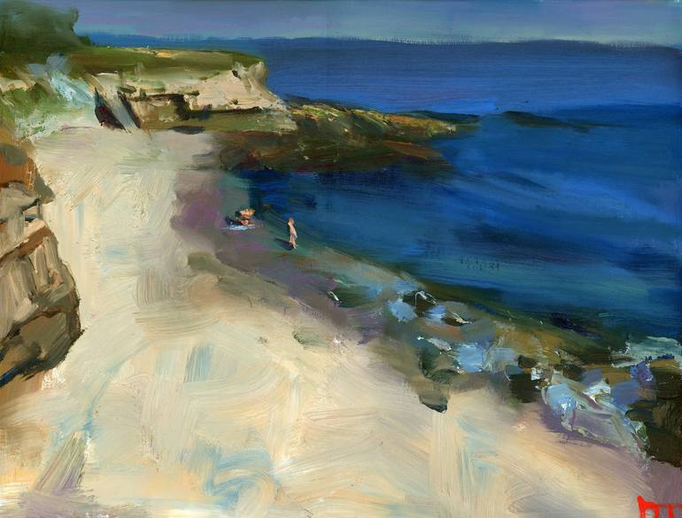 Private Beach is part of a series depicting vacations and leisure lifestyle.. I use subdued colors and loose brush strokes, as in most of my paintings, in order to create the mood and feel of spontaneity. Art buyers may see a symbolic reference to prominent 20th century American painters like George...