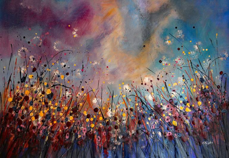 Cecilia’s artworks are lively and buoyant with explosions of colours and freedom which mirror the intensity of her own view of the natural sceneries. She is a real creator and inventor always seeking new forms of art and techniques to express her inner self. Her paintings generate from memories and visions that flow onto her canvas instantly leaving enough freedom for the viewer for their own interpretation. She specialises in large contemporary atmospheric landscapes and super-sized floral compositions using her unique abstract techniques as well as more organic and intimate abstractions. Her large scale paintings combined with her unique free-flowing abstract techniques have brought her great recognition and her works have been selling all over the globe to private collectors and for interior design projects. Born and raised in Italy but upon receiving her degree in Painting from the Bologna’s illustrious Accademia Di Belle Arti Cecilia moved to London,UK and over the years she established herself as a full-time independent artist. Currently lives and works in rural Hungary where she solely focuses on her art practice. She is a very approachable character and enjoys engaging and working closely with her clients let them be private home owners or interior design specialists.