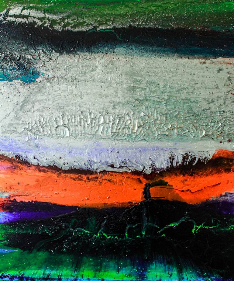 i was interested in chemical properties of paints, drying process and reaction to another additions. it was the beginning of my experiments. in my works i draw water, ice, lava, landscapes. the strong texture allows to project your vision to the canvas.