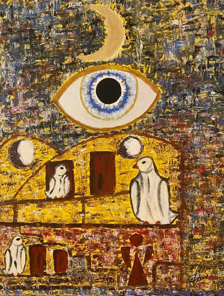 This painting reflects the peace, faith, feelings, limits, development that man can always find when he finds a good path in life and opens the right door for him.