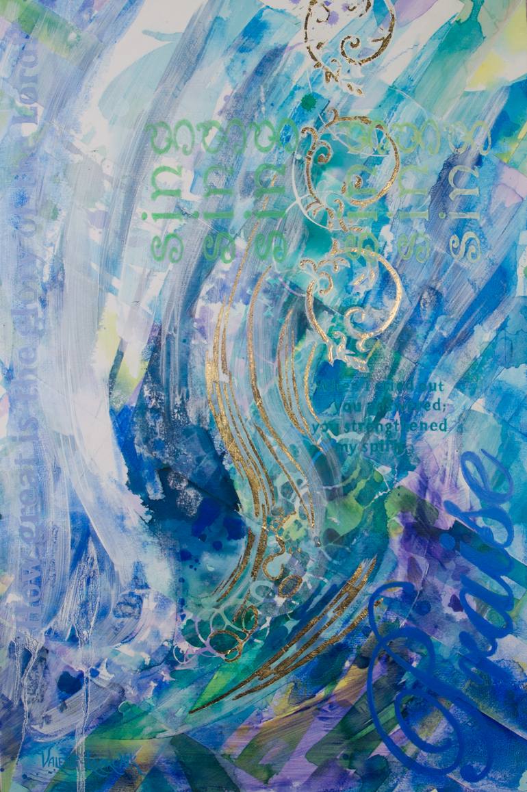 My work is often inspired by music--Sonetto ("a little song"), Allegro, et. al--so while reading Psalm 138, I realized that a psalm is a sacred song, which prompted me to create a painting that is a visual song of praise, incorporating words and phrases from the text, as well as visual rhythms and p...