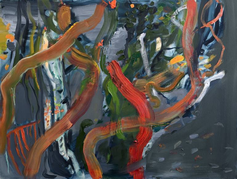Contemporary expressionist oil canvas painting was inspired by beautiful nature of Canary island La Gomera, Spain. The large modern canvas artwork is signed on front and back. The artwork is covered by a thin layer of glossy protective varnish. Abstract artwork inspired by the magnificent nature, t...