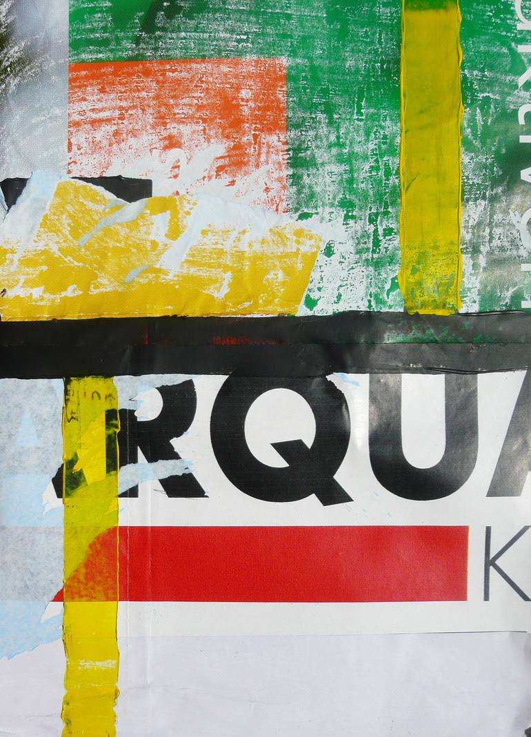 "Psychel" abstract composition of acylic paint on poster-wall collage acrylic on paper 70cm x 50cm signed & dated
