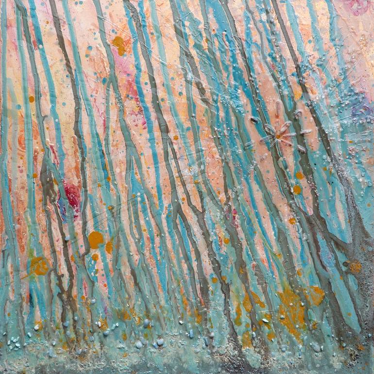 Laura is an Hawaii artist, having moved from NYC area in 2020, she lives on the edge of creation surrounded by lava flows on the Big Island. Her work is greatly influenced by the ever present energy of the lava, volcanic mountains, sea and stars. Hawaii has a certain light quality that her artworks portray as the artist mostly pour paints outside. "My paintings explore fluid water patterns of life; the drop, wave, meaner and spiral. The paint records the movement as the liquid flows around the obstacles occurring in its path. As we are faced with challenges in our lives, we are called to evolve and float down the river meandering around each boulder as it comes. EVOLVING PATTERNS express the beauty and grace of change in our lives."