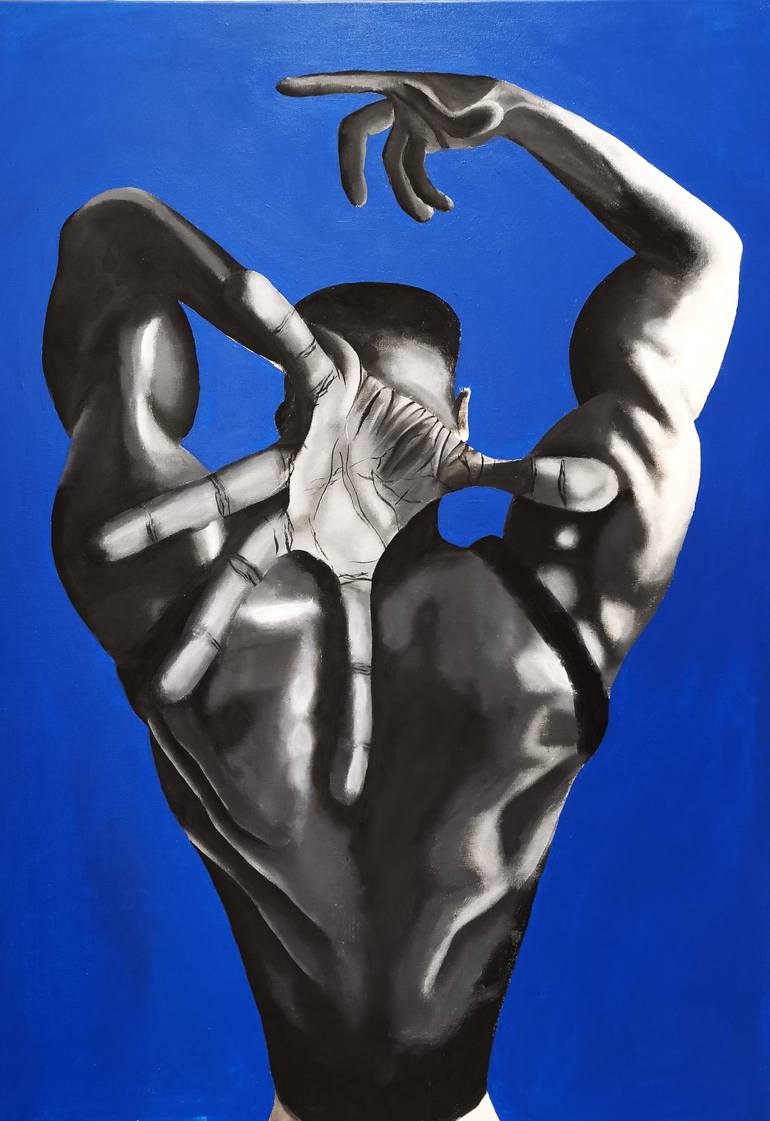 Captures the trance-like state of losing oneself to rhythm. The figure’s exaggerated pose reflects the vibrations of sound coursing through the body, with every movement expressing the raw emotion of the beat. Set against a striking blue background, it celebrates the connection between music, motion...