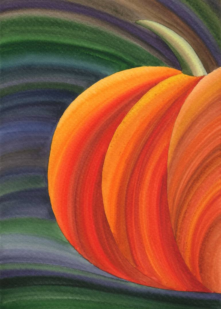 Pumpkin abstract watercolor. From the series "Abstract Vegetables". Meditative symbolic painting. This artwork is sold unframed. Materials used: watercolor paper 300 g, watercolor paints, brush Size: 29,5 x 21 cm Author's signature on the back of the painting. You receive a certificate of authenti...