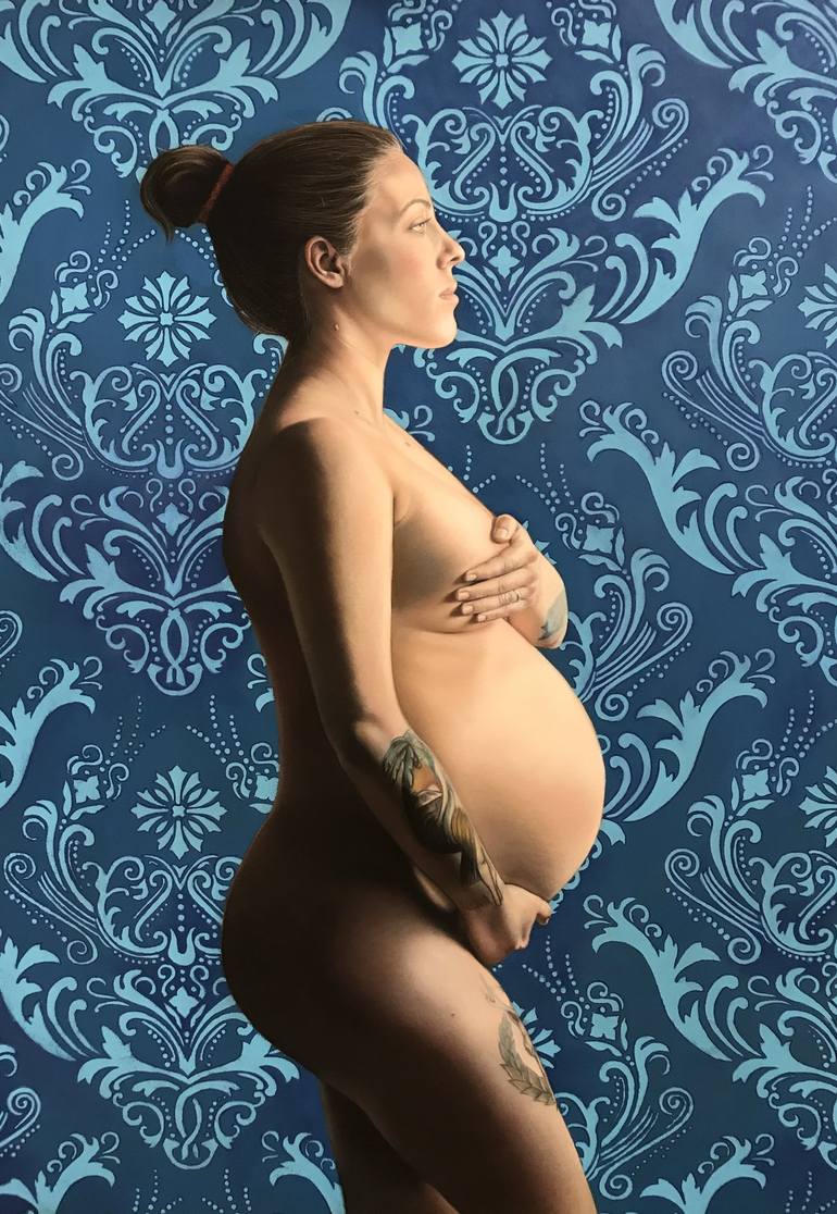 Subject: Woman pregnant with her firstborn. Creation: This work celebrates the magic of life at its beginning. Inspiration: It is a tribute to motherhood, the connection between mother and child, and the transformation that accompanies this unique moment. Anecdote: As I was painting, with one ha...