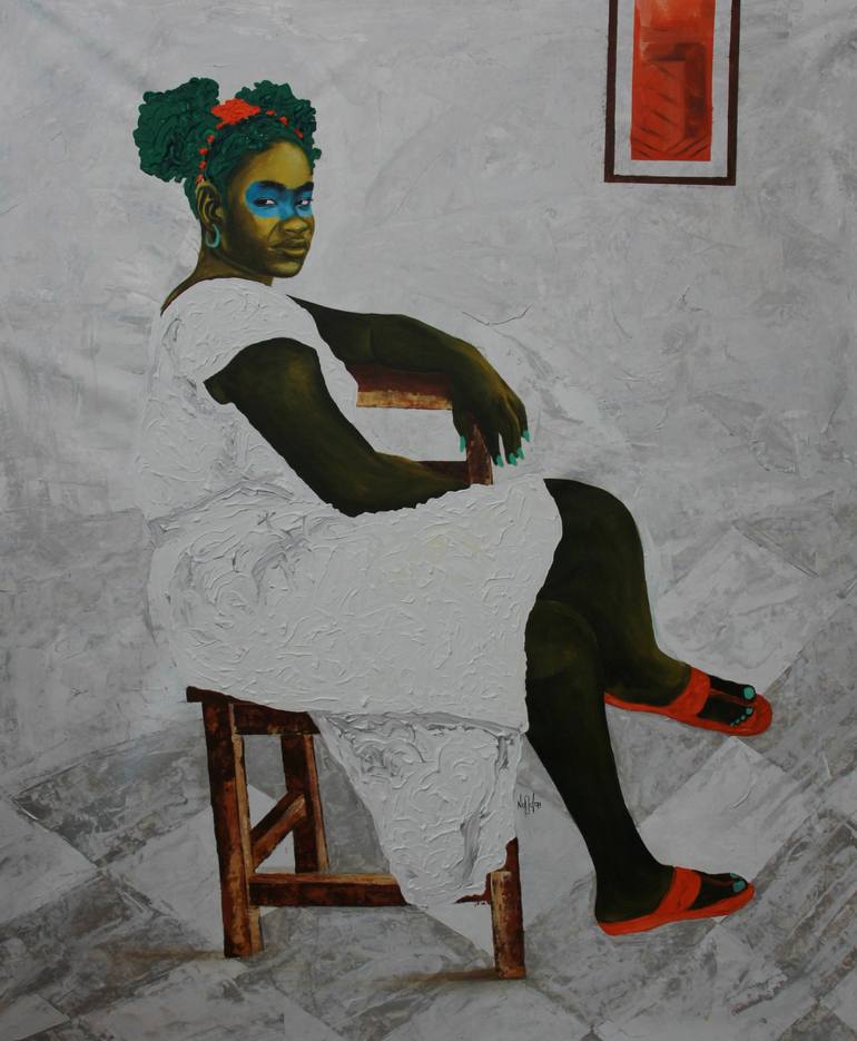 In his work, Tetteh condenses the internal sentiments and tensions of his characters and focuses them, using the eyes as the outlet for expression. In this way his subjects become independent bodies, bold and daring. By examining the psychological conditions we as humans are prone to experience, and then exhibiting them through physiological manifestations of that experience, Tetteh’s work is processual in nature, approaching each personality with care and consideration. His experiments are not only in content but in form, colour, and texture, manipulating paint through swift brush strokes and thick impasto. Theophilus Tetteh (b.1991) lives and works in Accra, Ghana. He studied Graphic Design and Painting at Marimus Art School, whilst continuing to experiment with different media. After finding solace in the pictorial possibilities that Expressionism offered, he found figurative paintings most effective in exploring emotive qualities. His figures which often appear static and singular, are in fact dynamic entities of the local culture. Tetteh has participated in solo shows and group projects across Ghana, notably the Kente Design Project for Kejetia Market (Kumasi, 2017) and National Theatre of Ghana (Accra, 2018). He was recently awarded Artist of the Year (2021) by the BE OPEN Foundation and is also a member of the Ghana Association of Visual Artists (GAVA).