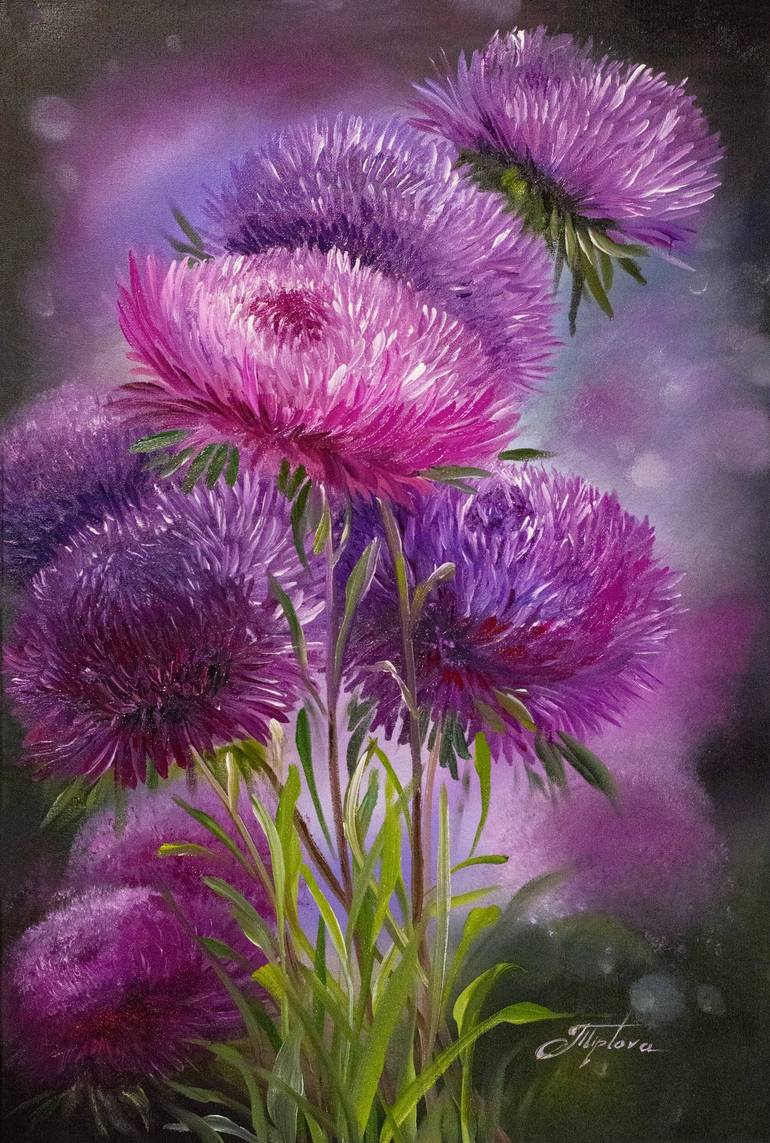 Original one of a kind artwork of bright purple flowers. Colourful and bright painting of purple Asters will bring happiness and smiles to your homes and will help you to feel the warmth of summer and sense sweet smell of summer flowers. This artwork will be unique addition to your home interior and...