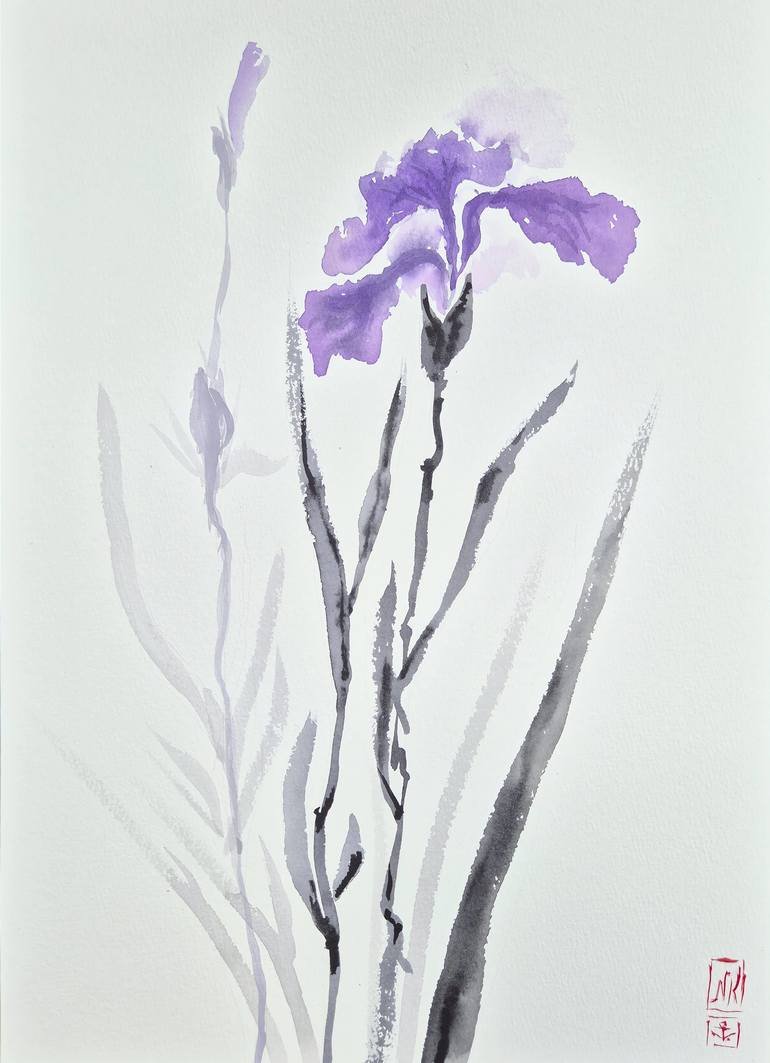 Experience the elegance of Japanese minimalism with "Purple Iris," an original watercolor painting inspired by traditional Asian aesthetics. This delicate artwork captures the graceful beauty of a purple iris, accented with subtle black and lilac tones. Painted on premium 100% cotton paper, the piec...