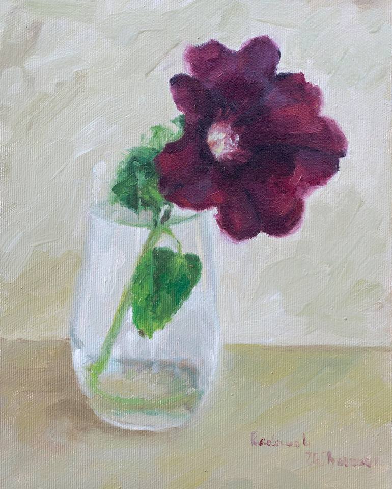 Still life oil painting with the beautiful flower called hollyhock in realistic/impressionistic style. I saw this beauty on the street a week ago and its image on the canvas appeared in my mind. The art work is handmade created from life with professional oil colors on stretched canvas. One of a kin...