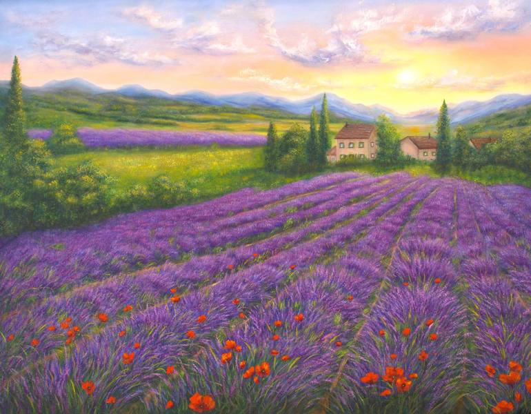 Lavender field is original painting on stretched canvas, hand painted from my with quality oil colors - Size of the painting: Height 31.5 inch- 80 cm Width 39.4 inch - 100 cm Depth 0.8 inch - 2 cm - you can easily hang up this landscape painting with 2 prong hooks - the sides of the canvas have been...