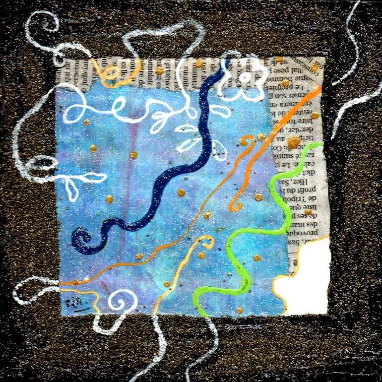 Description : Collage logs, paper & acrylic paint, nugget and holographic gel on canvas cardboard backing.Theme: Decorative proposal of ornamental abstractions of symbolic or floral figures. It is a reactivation of the idea of the beautiful in the work of art. Each of the works has been considered a...
