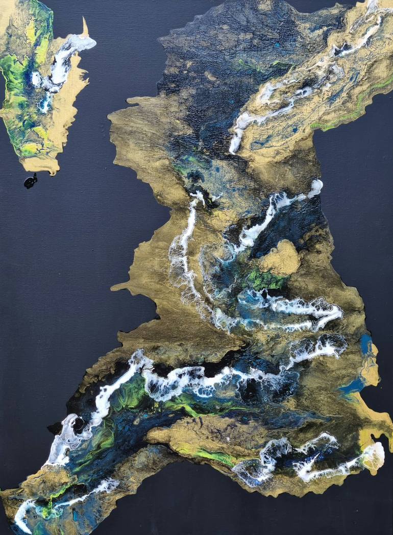 Quantum leap serie :Down to Earth first painting in this serie, crafted in the fluid art technique, beautifully melds earth tones with deep black accents, creating a dynamic and mesmerizing composition. The organic swirls and undulating patterns evoke a sense of natural landscapes and geological for...