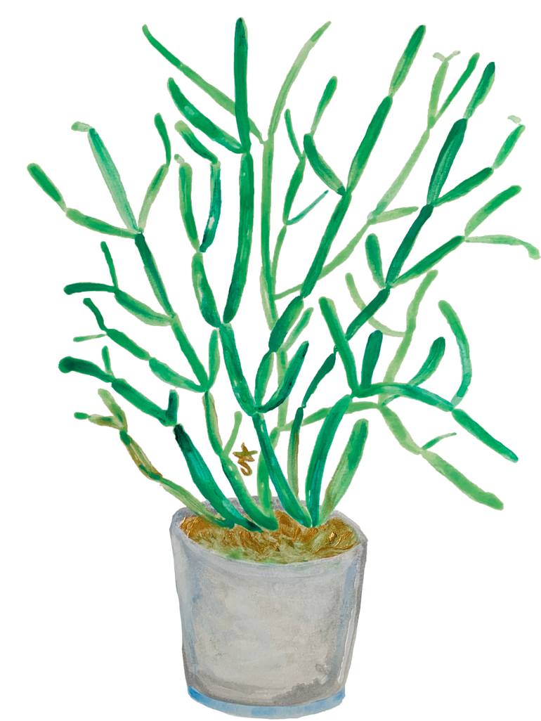 This is one of my first watercolor paintings during the quarantine for covid-19 and the pandemic lockdown in New York. I spent time enjoying the plants in my space and putting them to paper.