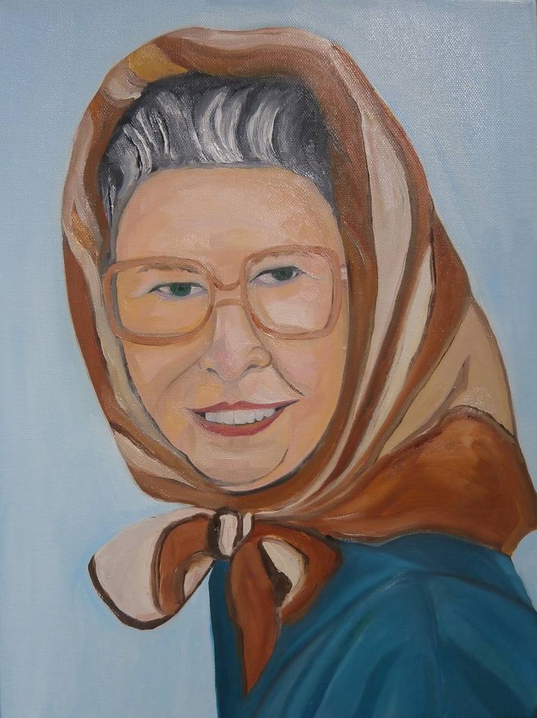 Face series Queen Elizabeth #23 signed and dated by Yvonne Koo at the back of the canvas. Original oil painting