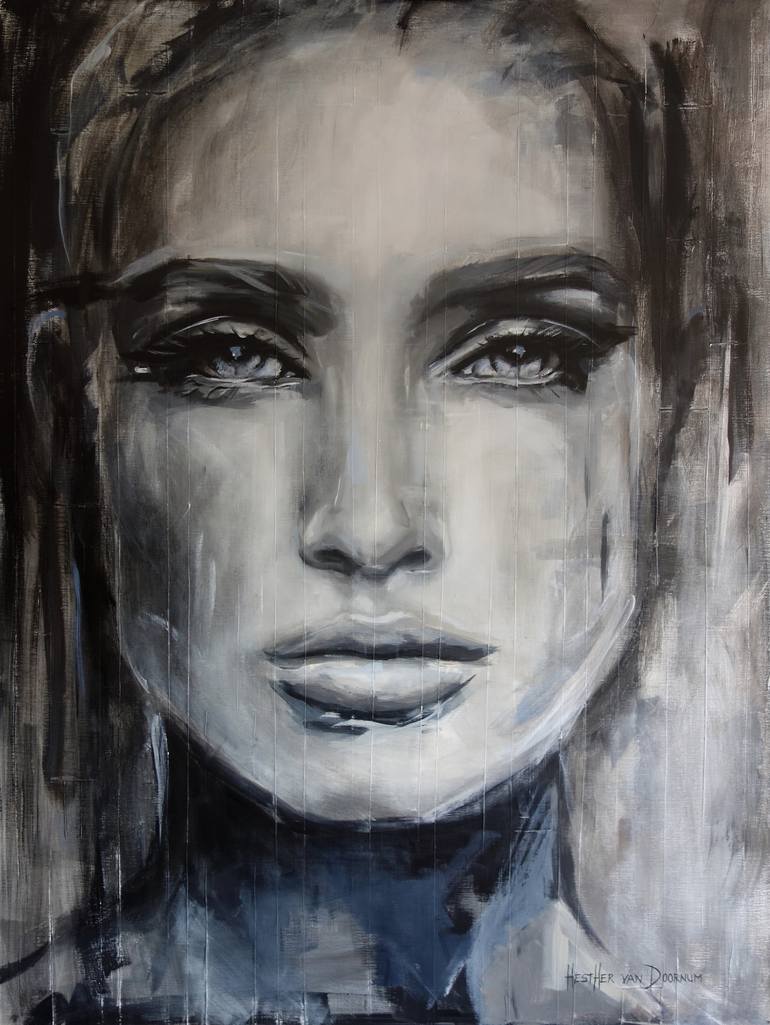 Hesther van Doornum BA (1973) | Independent Contemporary Artist | Curated member of the NABK (National Association of Expressive Artists | Curated member of the BKKC (Brabant Knowledge Centre for Art & Culture) | Member of Pictoright. Hesther works freely, autobiographical as well as on commission. Her work is included in both business and private collections around the world. "Powerful, sensual women who are not frightened to show their vulnerability. These are the women on Hesther van Doornum's canvases. "˜This is me' they seem to proclaim. Hesther: "A woman who dares to be herself is wonderful to behold, balanced in body and spirit. The open attitude of my models radiates vulnerability as well as strength. This is enhanced by their transparency. The characters flow as it were, into the background. You can say that for me these faces are my canvasses; the landscape of women." Hesther has been passionate about drawing and painting since she was a child. Her first work, however, was inspired by the many drawings she had to do from models at college. In the course of the years Hesther's work has developed from a figurative style to a more abstract approach of her subjects. "I believe Art is born by imagination. Of course it also needs knowledge and curiosity and other aspects but without inspiration, something that comes from outside the consciousness of the artist, an artwork becomes hardly mediocre. I dream, read, hear, think, feel, see and start painting." People, particularly women, are a key element in her paintings. The choice of subject, expressive use of colour, composition and clearly visible strokes make her work a symbiosis of reason, feeling, sensuality and symbolism . Her work fascinates the observer, it is gripping and stays in your thoughts. "For me every painting is an achievement when I succeed in painting real, soulful women; when I succeed in capturing a moment in time, to make it count for ever."