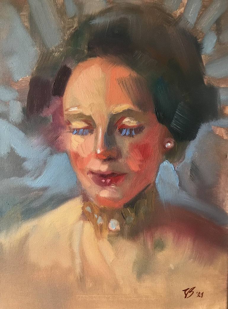 Abstract portrait of a beautiful woman Contemporary modern realistic painting Ala Prima painting technique