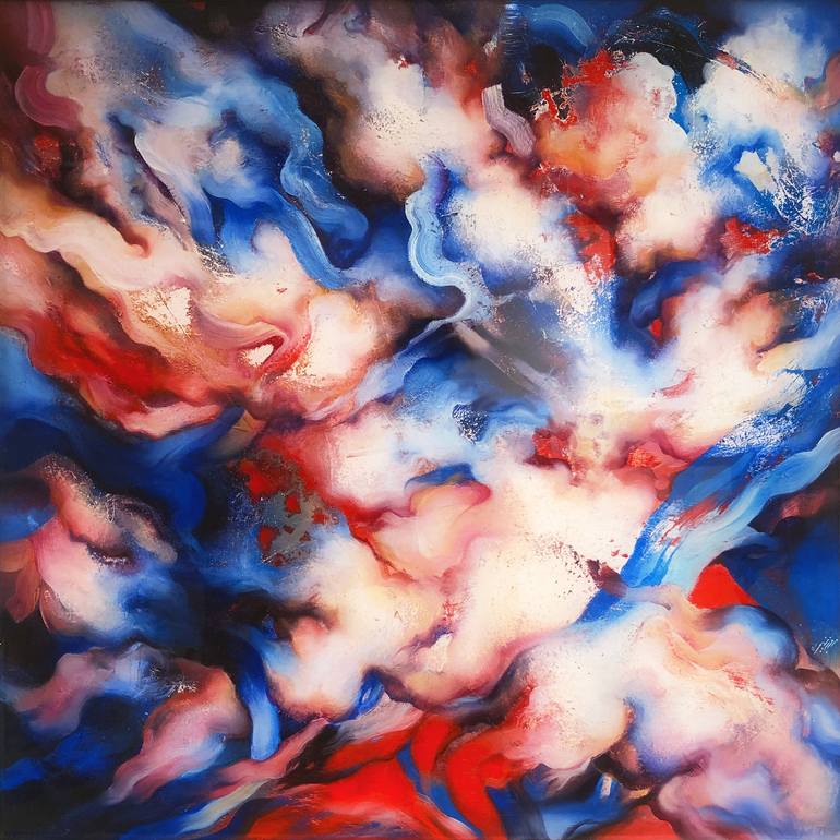 “Quiet Storm” is a work created in 2021 made in mixed media (oil, acrylics, pigments and stuccos and resin) on wood. it represents an abstract landscape of clouds and moving cirrus clouds that mark the red background of the painting in a dance of colors recalling a storm. The use of pigments togethe...