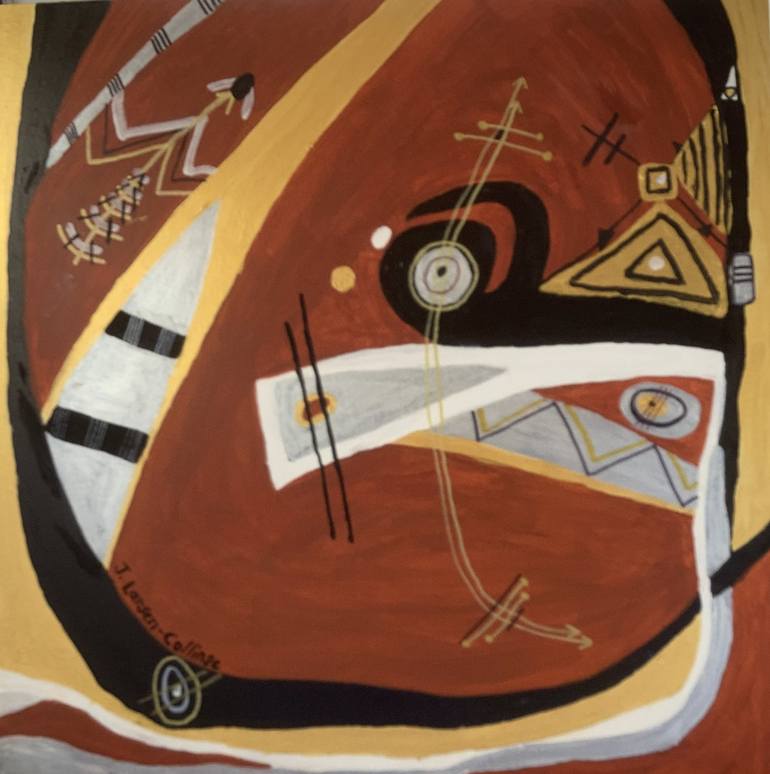 From my ‘Quizdings’ series. A beautiful geometric abstract from my peculiar,unique, mathematical mind. Bren, black & gold dominate. Plunge in and explore.