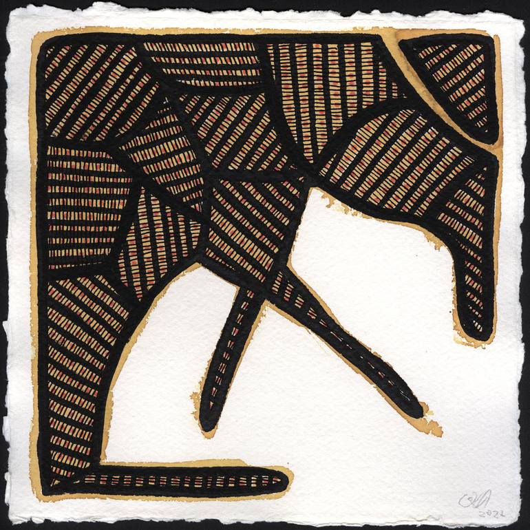 Tribal and magic graphisms inspire this contemporary painting on hand made cotton paper with jagged edges