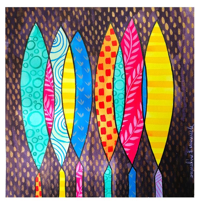 -illustrazione contemporanea a colori di paesaggio con alberi -i tratti e lo stile sono unici originali e di mia fattura -il disegno è realizzato su carta fabriano 100% cotone 300 gr con inchiostro di china -firmato sulla parte frontale -le dimensioni totali sono di 27 x 27 cm -l'opera viene spedi...