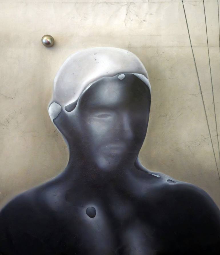 Stefano Mazzolini was born in Parma in 1968. At the age of nine he was nominated for the "Design and City" award organized by the municipality of Parma. In 1989 he graduated as a Master of Art in pictorial decoration at the Paolo Toschi Institute in Parma. He dedicated himself for several years to the restoration and conservation of wall paintings. In 1990 he first lived in London and subsequently moved to New York for a short period. He manifests his graphic style in a gestural and immediate way, the dynamic line creates drops of acrylic on paper. Piloted stains well managed without following drawings and projects, thus replacing the brush with ampoules and spatula. Intriguing portraits, fairy-tale environments and mythological animals are formed, fantastic figures animate a controlled chaos. He creates silhouettes of androgynous subjects, using paper collages to assemble and glue layers of faces that are always hidden and minimal. With mixed acrylic colors and enamels he obtains fabrics, colored skins which he applies on canvas wrapping the work, metal grafts, application of various elements, the subjects are always deliberately ambiguous and free to be interpreted, input to reach our dreams. By cutting the canvas and superimposing it he constructs the painting into sculpture. He manipulates the fabric of the painting bringing the image to three-dimensionality. While on the canvas with oil he expresses his vision of the hidden, evanescent color backgrounds, shaded by transparencies but precise in representing objects, people and intrinsic things and formed by a very complex structure like everything that lives and forms. Hints of cities, landscapes between nature and animals that empathetically interact with detailed objects, convulsive scenarios of neo-modern plans and perspectives, where the vision of man is absent, but still rich in his humanity in every circumstance. With sculpture he strengthens artistic identity. Thus inventing a new three-dimensional representation, an exclusive invention of Lycra sculpture. Resin, a treated and consolidated synthetic fabric, offers a new conception of sculpture, human and alien figures, stylized silhouettes, always suspended between the sacred and the profane, draperies to form characters out of past and revisited in a modern key.