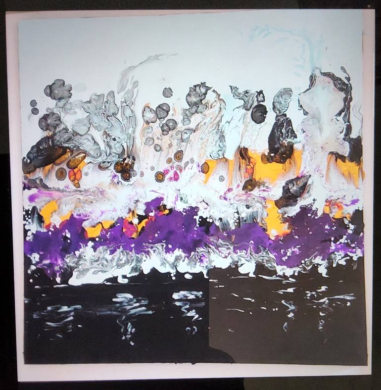 RIVERSIDE, this is original acrylic painting on quality of canvas gresso by asian art, she's making by pouring with acrylic paint mixed with the water last glossing and framed with the silver color ready to hanging