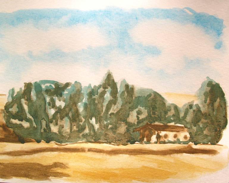 ROMAN COUNTRYSIDE LANDSCAPE: WHEAT FIELD, FARMERHOUSE, TREE, SKY, CLOUDS - Landscapes of Italy and Rome countryside: tempera on paper painting series This is a series of artwork on the Italian landscape. The natural landscape, most beautiful and charming of the world. Landscape full of history, of ...