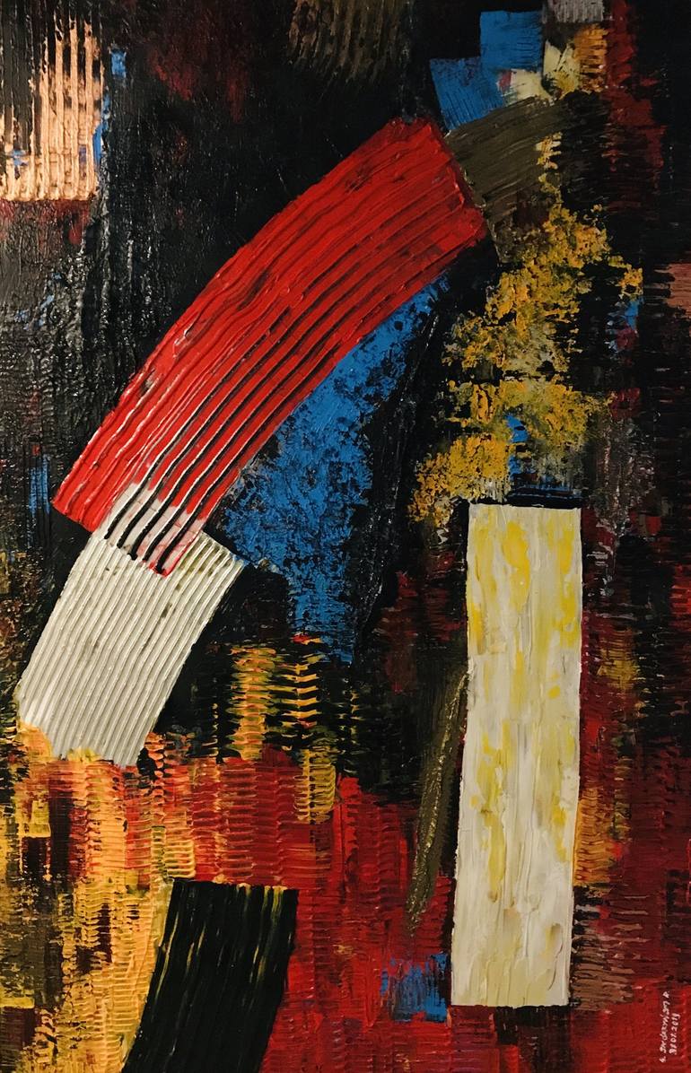 My painting is an abstract and colorful display of minutes that together form a whole integrity - in life and in the image. Every element of my picture is one moment, one minute, which has quite significant meaning and influences everything. There are good and bad moments, important and meaningless....