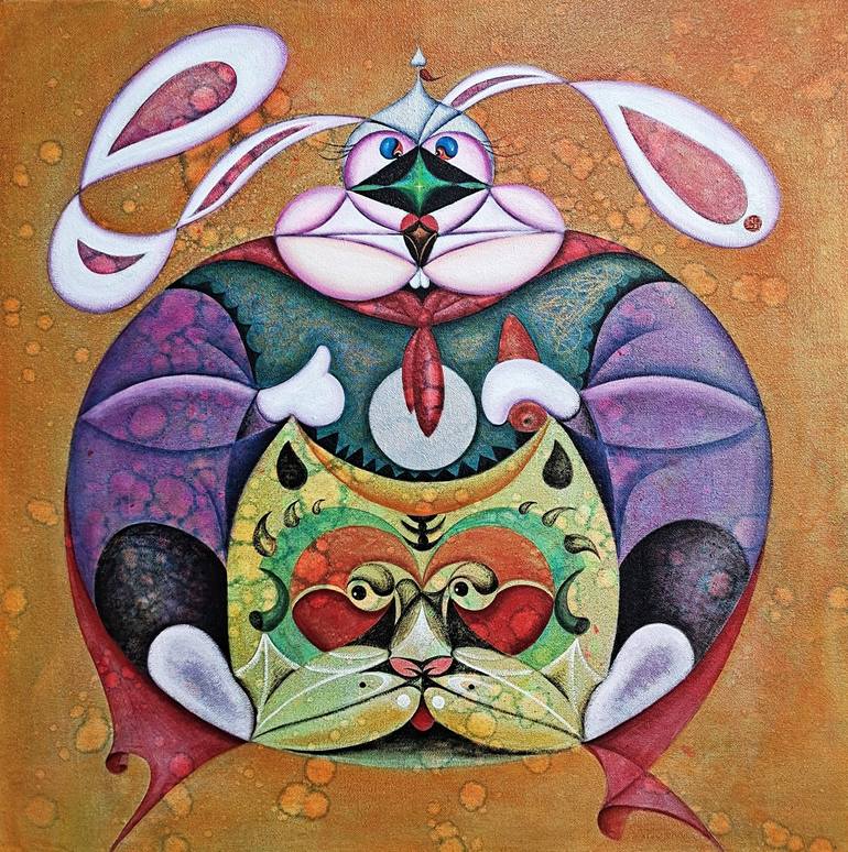 Rabbit God Riding Tiger Print