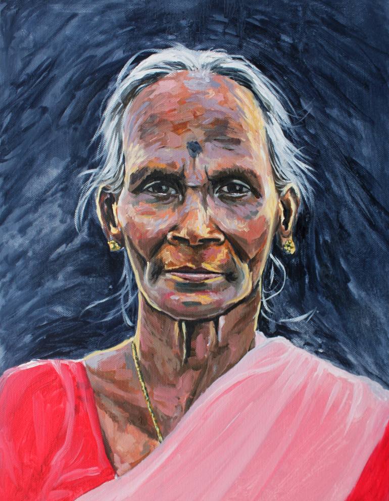This is a portrait of an inspiring woman who was a big loving part of my childhood vacations in Kerala, India. Her resilience, kindness and luminous beauty are as old as the beautiful landscape around her, and continue to inspire me.