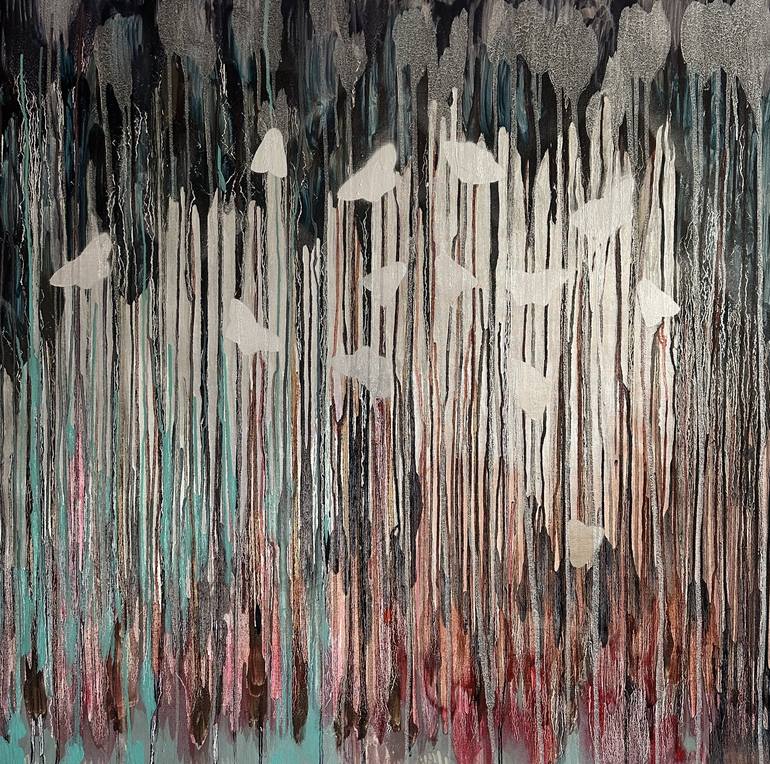In this work, you can see how the gates of the soul open, dissolving duality, which looks like a spectrum of deep shadows and bright colors. Moths, like light particles of the soul, fly out, but do not rush to fly away. They explore the space, illuminating and complementing it. By employing oil, sil...