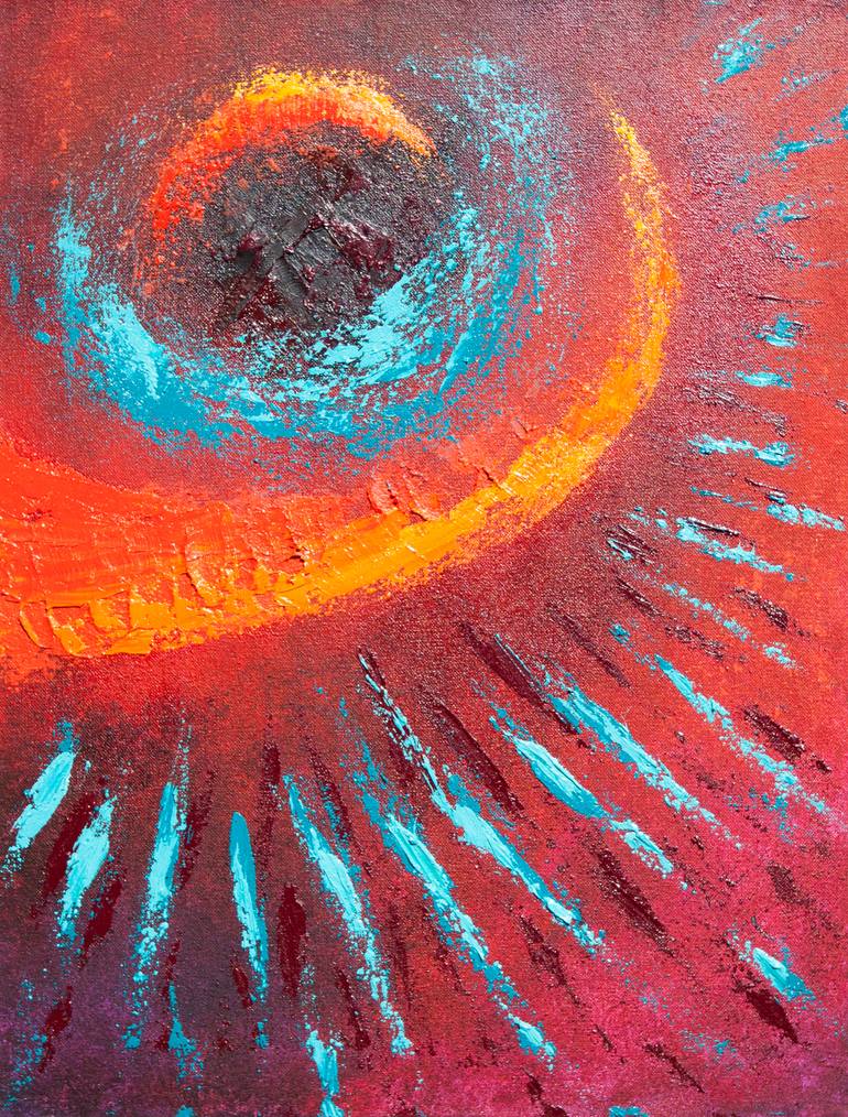 This piece has a matte background with an impasto gloss foreground. The color and texture choices are designed to create a sense of depth and draw in the viewer. The artist's goal is to create images that do not look remotely representational. She finds her most successful work to be those which cau...