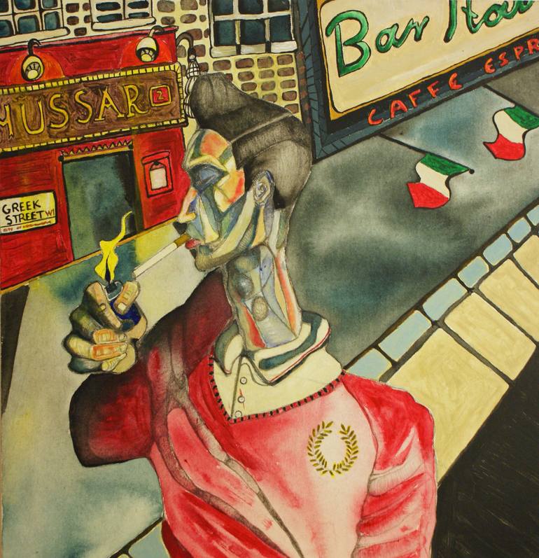 The piece is part of the series of paintings, 'London Anarchy'. The core of the collection is featured in the latest Reg Traviss film, 'Anti-Social' (to be released later in 2014), as 'Philip's' (one of the leading characters) work.. Radical Reg (Soho), as featured in the film, captures the direct...