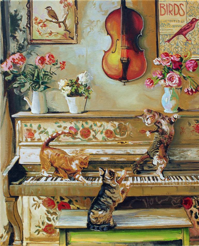 Primarily painting cats with oils amongst other figurative work, Tim attempts to capture the humourous habits of our feline friends......