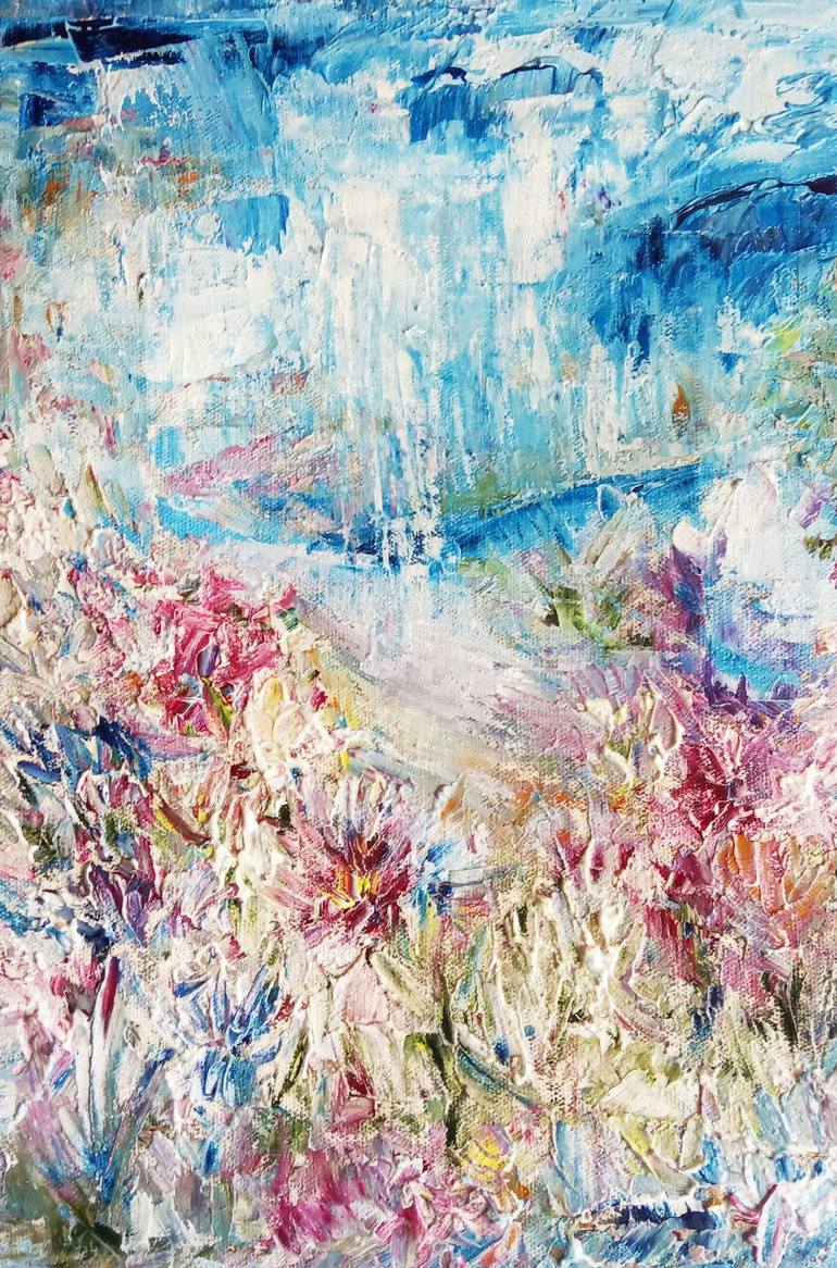 Small original oil painting with rain over blooming fields. ✅ Title: "Rain. California. Flower field" (2021) In this captivating oil painting, Selena Sashina transforms the simple beauty of a rain-kissed California flower field into a breathtaking scene brimming with life and emotion. Through the d...