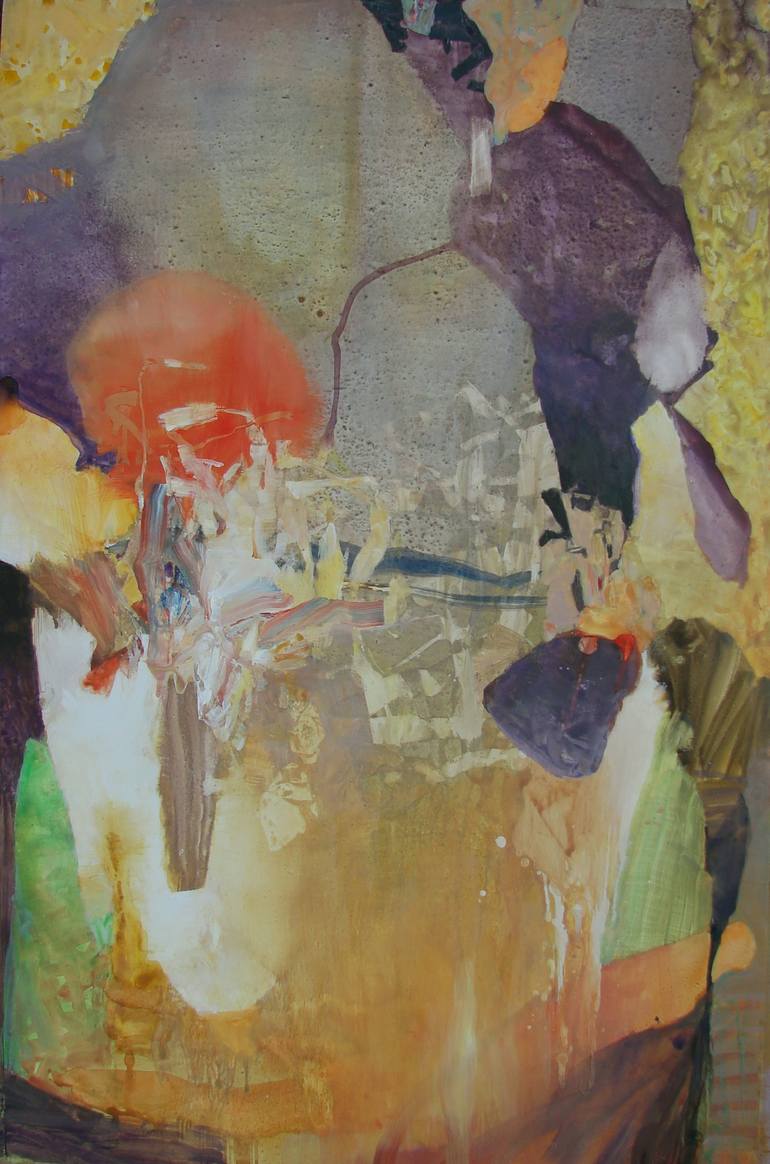This abstract expressionist watermedia painting took on characteristics of Asian art early in the development. Both in the forms and colors. I chose a neighborhood in Kyoto for the title.
