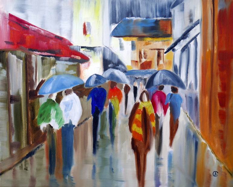 In this oil piece, I've captured the symphony of hues and reflections from a rain-kissed cityscape. The softened silhouettes of pedestrians, each with their unique umbrellas, convey the collective solitude in an urban deluge. I played with light and shadow to evoke a sense of both motion and tranqui...