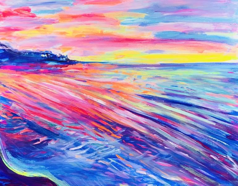 This is a colorful and fun painting of the sunset done in neon rainbow colors. I hope it brightens up your mood as much as it does mine :)