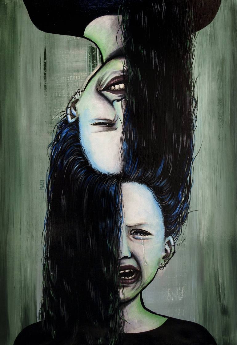 Finnish title: Rajatila English title: Borderline Acrylic painting on plywood. Framed. "Rajatila" is pretty much a direct translation from "Borderline" and it is an outdated name for what is now in Finnish called "unstable" personality disorder. It is still called "borderline" in English. Hard to ...
