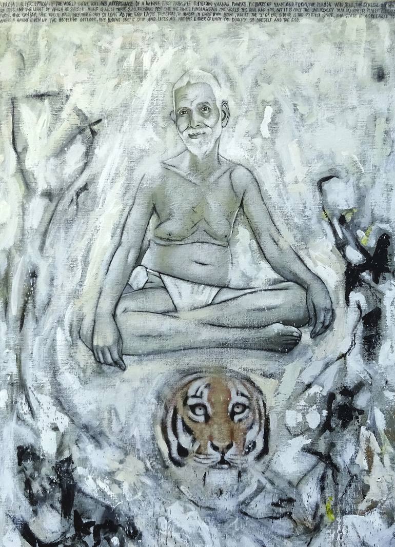 This work belongs to my series: HUMAN FAROS (Lighthouses). Ramana Maharshi was one of the best-known Hindu religious of the 20th century. The core of his teachings was the practice of atma-vichara (the inquiry of the soul).