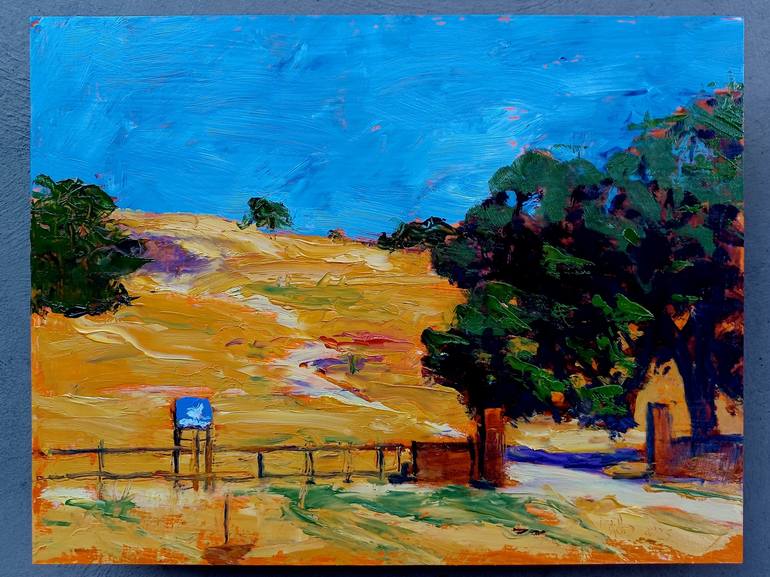 "Ranch Gate" is a small oil painting that captures the serene beauty of the California landscape. Painted en plein air, this piece depicts the grasses and live oak trees near the gate to Zaca Ranch in Santa Barbara County. The artist's impressionistic style brings the scene to life with vibrant col...