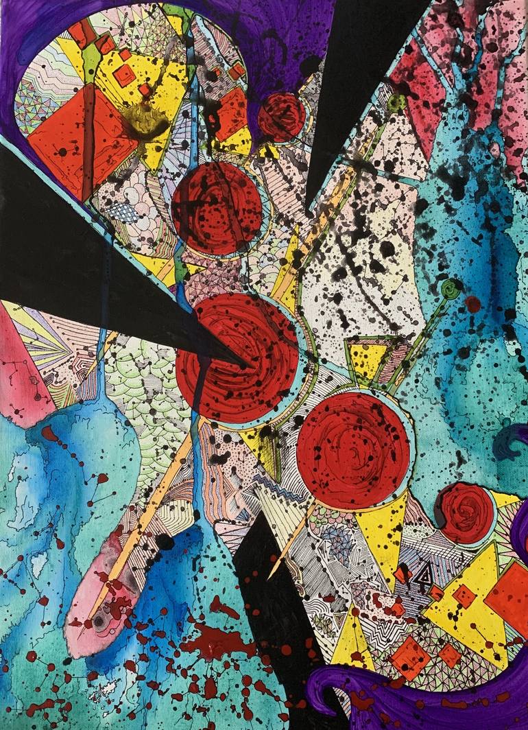 This painting is the beginning of a collection that represents the inner depths of my mind. The only inspiration I have to create these is what I love to look at--it's what makes me happy. Color, geometric shapes, vibrant, joyous hues. Contrast. Randomly calculated forms, simply for the joy of creat...