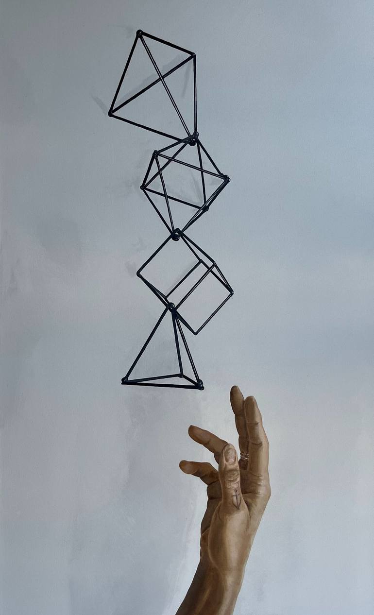 I’ve continued to develop this work by exploring what happens as the purity of geometry is represented alongside the particular (and always imperfect) shapes of flesh bodies. Does a stellated tetrahedron alongside an extended, reaching hand highlight the symmetry and order of its features, or highli...