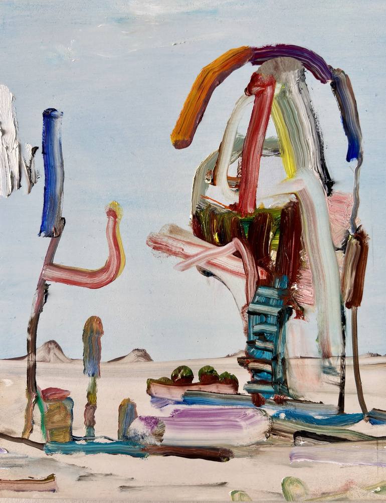 This painting is part of an ongoing series focused on human engagement in mutually shared spaces. In these works, figurative elements morph in and out of a lexicon of imagined forms and structures, with an emphasis on dynamic interaction, and a holistically flowing psychic arena. Paintings in this ...
