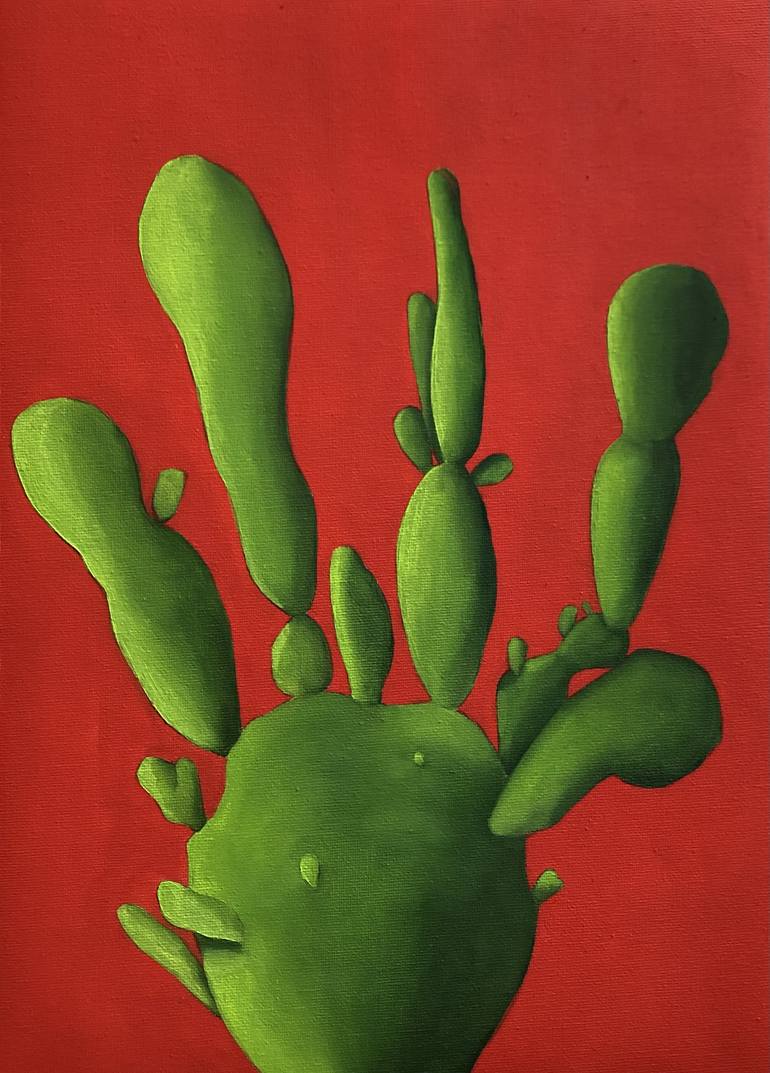 "Red Cactus" is a captivating oil painting on paper that explores the intriguing duality of the cactus. Like people, cacti protect themselves with a formidable exterior, yet possess the capacity to blossom with unexpected beauty when conditions are right. Executed with elements of figurative, illus...