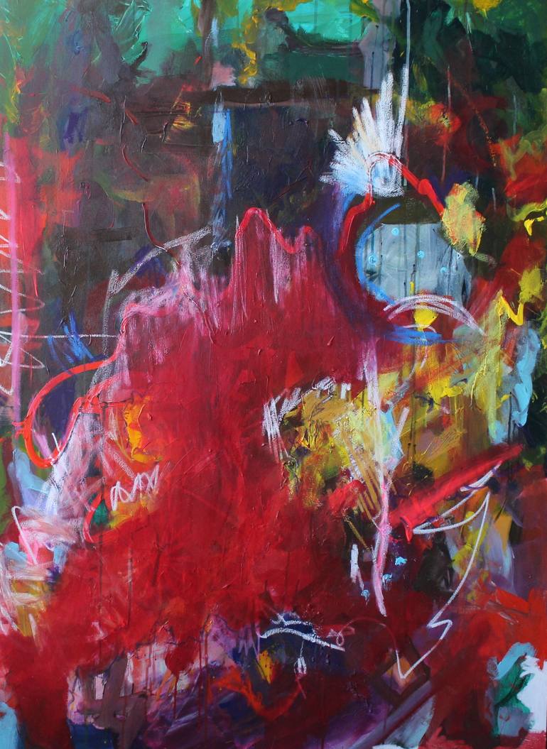 This piece has a lot to say if you're willing to listen. Red Caterpillar Riot The energy of the piece is at once soothing and chaotic. It brings a protective energy borne in fire. You see what you need to see when you view the piece. I see an eye at the bottom of the piece, the third eye or the e...