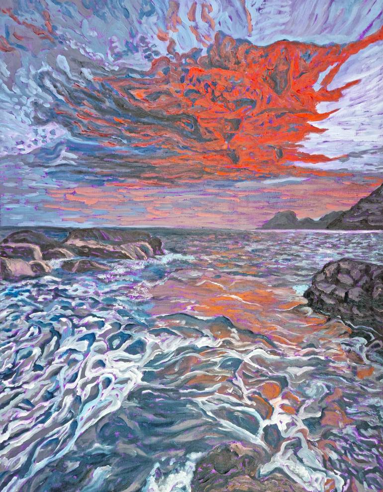 The impressionistic brush strokes draw you into the painting and create a sense of movement within the picture. "Red Cloud" is an original oil painting on stretched canvas.